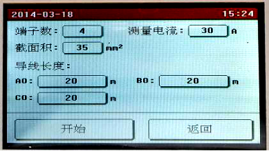 在主菜單頁面點擊“新建測試”,進(jìn)入測量前的接地線參數(shù)設(shè)置,如下圖所示:
