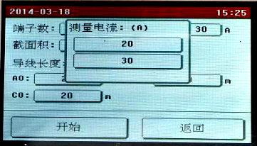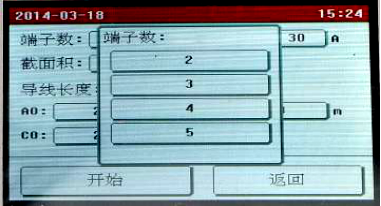 點擊需要修改的參數(shù)設(shè)置框設(shè)置參數(shù),全部設(shè)置完成后點擊“開始”按鈕,儀器即按照設(shè)置的參數(shù)開始自動測量各端子的電阻值,并計算電阻率,自動判斷接地線是否合格。
