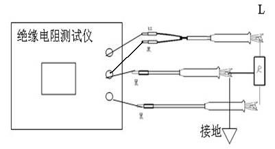 測量電氣產(chǎn)品的元件之間絕緣電阻時(shí),可將“L”和“E”端接在任一組線頭上進(jìn)行。如測量發(fā)電機(jī)相間絕緣時(shí),三組可輪流交換,空出的一相應(yīng)安全接地。(圖A)測量外殼接地起屏蔽作用的電器耐壓時(shí)如圖B。