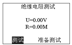 3. “R”選擇進(jìn)入,完成電壓選擇后進(jìn)入“絕緣電阻測試”: