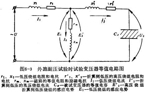 為了便于比較,根據(jù)變壓器原理,可以將試驗(yàn)變壓器在耐壓試驗(yàn)時(shí)副成圖6-3的等值電路圖。