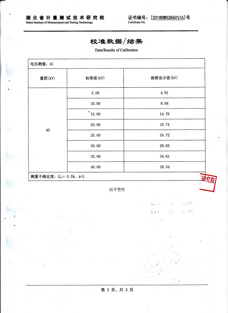 測量電壓范圍 0 - 40kV(特殊電壓可定制)