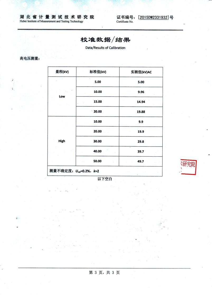 該電容分壓器高壓測量系統輸入阻抗高,線性度好,采用特殊的屏蔽技術,減少高壓對示值的影響,實現高穩定度,高線性度。