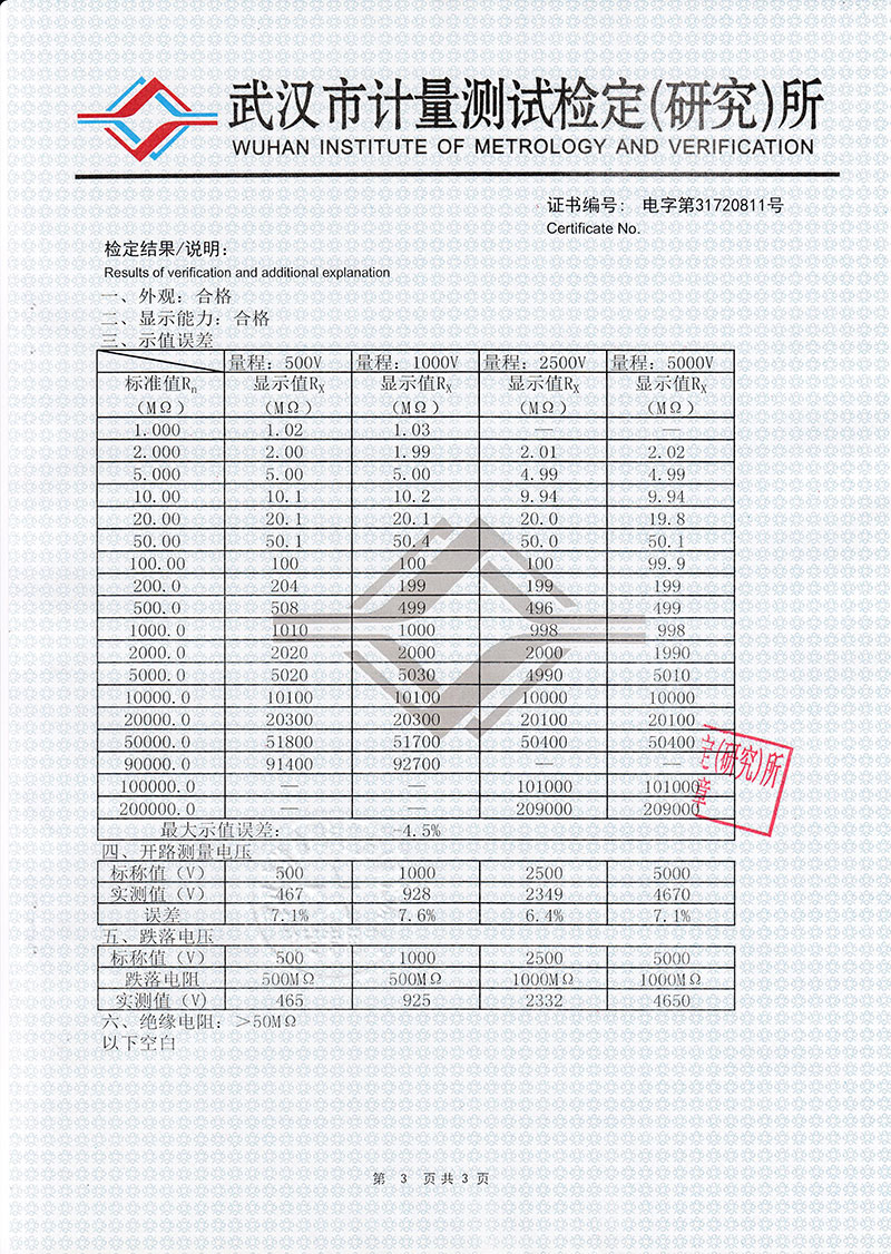 | 吸收比,極化指數 | 范圍:1~19.99 誤差:±(5%RDG+1d) (R>2MΩ) |