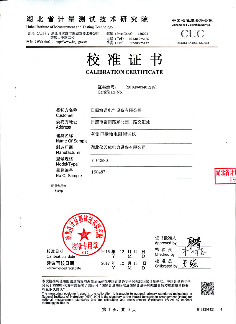 IEC61010-1(CAT Ⅲ 300V、CAT IV 150V、污染等級2); IEC61010-031;IEC61557-1(接地電阻); IEC61557-5(土壤電阻率);JJG 366-2004(接地電阻表); JJG 1054-2009(鉗形接地電阻儀)。 |